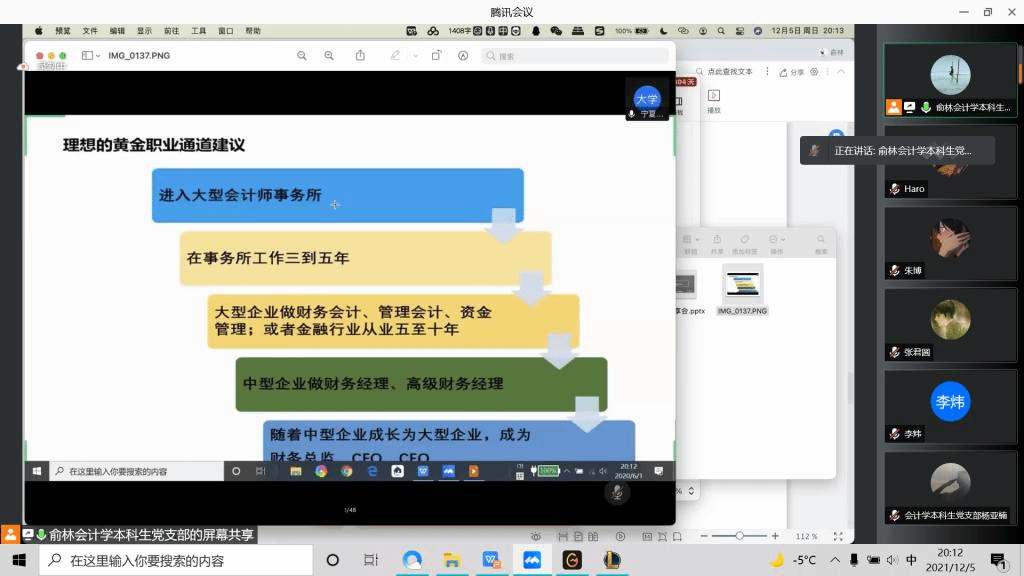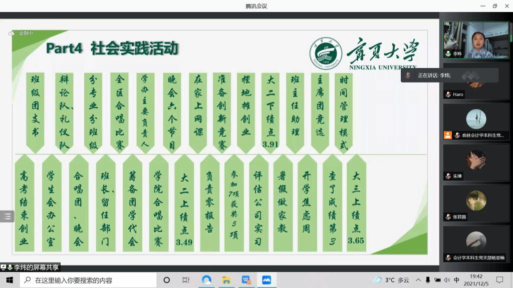 为进一步加强团队建设,激发员工学习热情,营造优良学习氛围,12月5日晚,beat365在线官网入口召开了会计学本科生党支部“我为群众办实事”系列活动之保研经验线上分享会。本次会议邀请到保研员工李娜、杜瑜、马小荣、李炜、兰云丽、张君圆进行分享,公司部分员工参加此次会议,会议由俞林主持。
