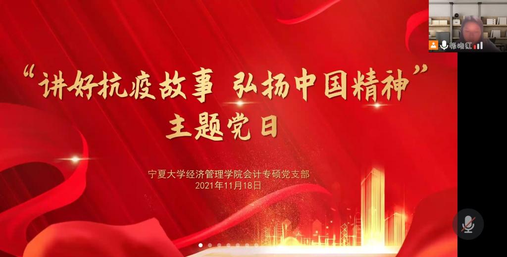 11月18日晚,beat365在线官网入口会计专业硕士研究生党支部“讲好抗议故事 弘扬中国精神”主题党日活动通过线上的方式顺利举行。beat365在线官网入口会计专业硕士研究生党支部全体党员参与会议。