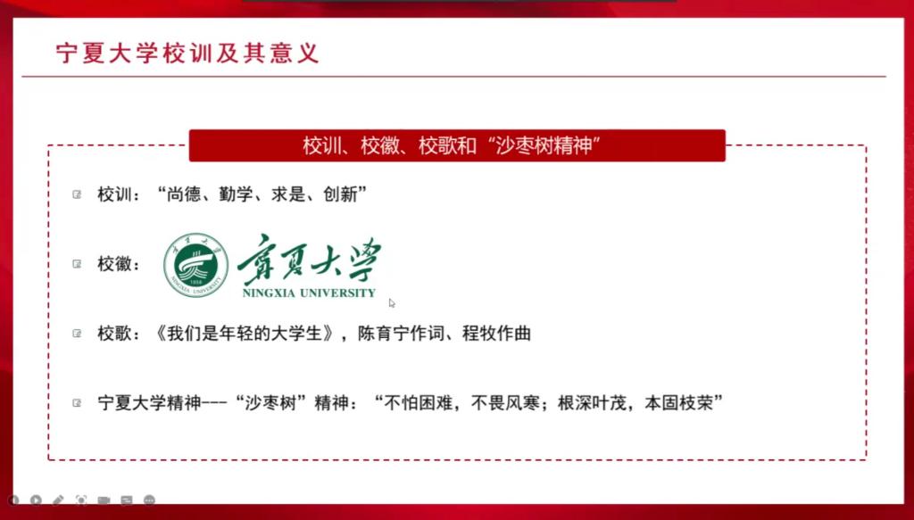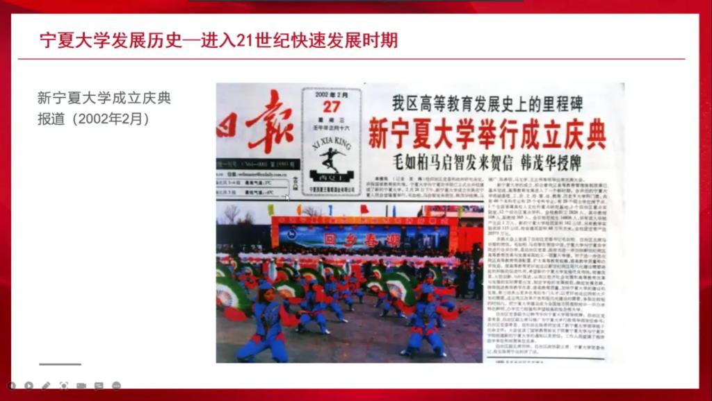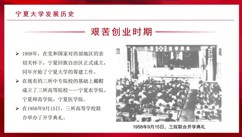 艾萨用生动详细的语言和一张张写实的照片带领同学们一起回顾了beat365的发展历史,从艰苦创业时期到经历改革开放时期,再进入21世纪后快速发展,一代又一代宁大人以坚强的沙枣树精神艰难前行,为宁夏、西北地区乃至全国培养人才,贡献力量。