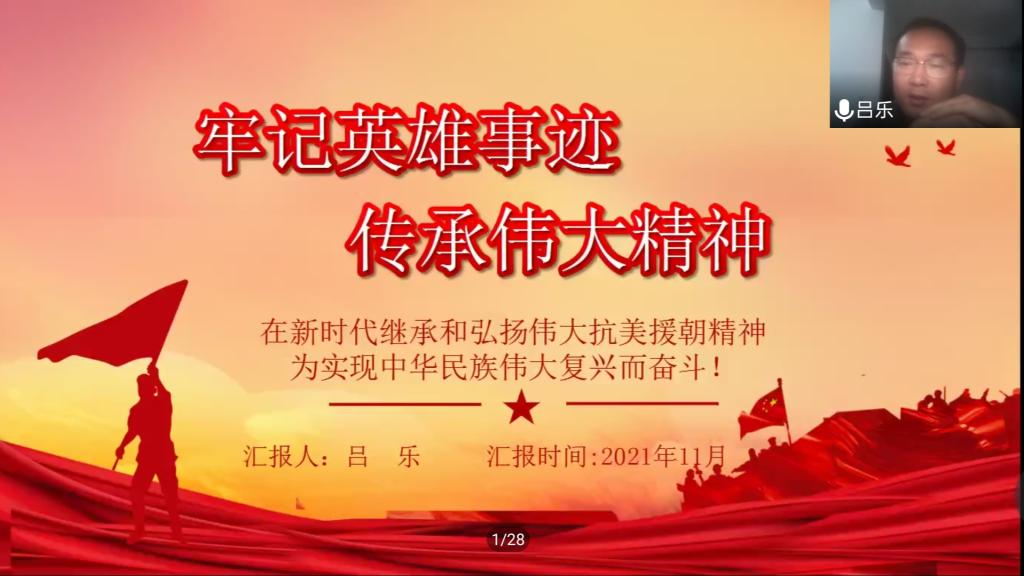 各位同志对习近平总书记在纪念辛亥革命110周年大会的讲话进行了热烈讨论。会计学本科生党支部杨茹萍同学表示,辛亥革命推动了中国社会变革,为实现民族复兴探索了道路,我们一定要牢记习近平总书记的教诲,弘扬辛亥革命先驱的崇高精神,共襄中华民族伟大复兴伟业。会计学本科生党支部余晓静分享了自己的看法与感悟,她说,我们肩负着历史重担,少年强,则国强,少年兴,则国兴。同时,余晓静号召同学们要传承革命精神,求是创新,认真探索。重温历史,先辈们的热切呐喊回荡在耳畔,催人奋进。牢记使命,践行担当的责任,吾辈自强不息。度之往事,验之来事。在新时代继承和弘扬伟大的抗美援朝精神,为实现中华民族伟大复兴而奋斗,化学技术员工党支部书记吕乐讲解抗美援朝的历史。吕乐提醒同学们要铭记历史,缅怀英雄,为了更好地前行,大力弘扬和传承伟大的抗美援朝精神。他强调全体同学要直面挑战,勇于创新,在新的起点上,为中华民族伟大复兴进一步发展作出应有贡献。其余数位同志也进行了分享。