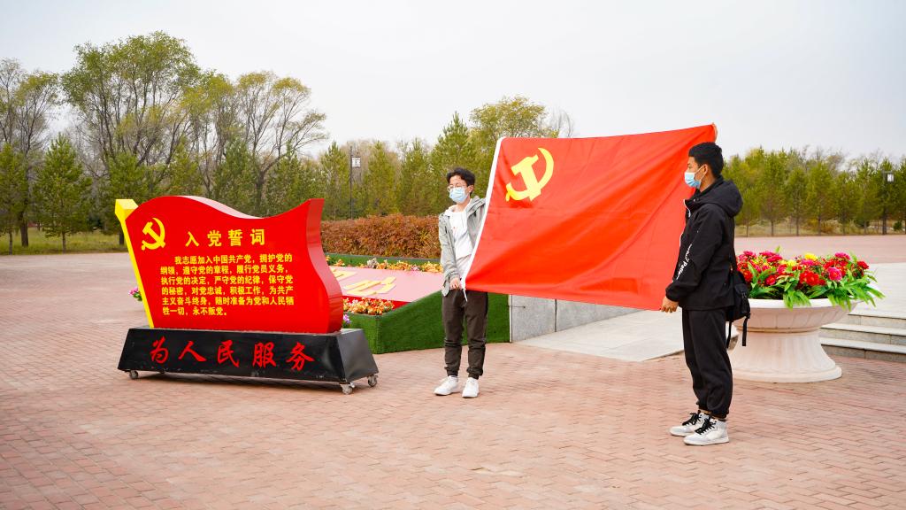 在盐池革命烈士纪念馆门前,经济学本科生党支部书记何韶华领誓,带领全体师生面对党旗,郑重地举起右拳,重温入党誓词:“我志愿加入中国共产党,拥护党的纲领,遵守党的章程……”句句铿锵有力的誓词表达了大家对党的忠诚和为党奉献的坚定决心。