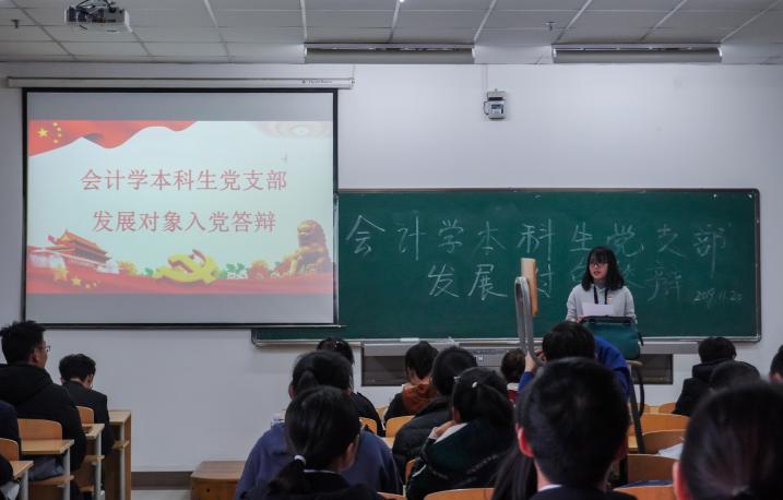 11月20日下午3点,beat365在线官网入口于贺兰山校区文荟楼103室举行了会计学本科生党支部发展对象答辩。会计学本科生党支部书记王嘉豫、党支部副书记陈兵、组织委员于亚丽、宣传委员马晓春、吴一丹担任评委。本次答辩由17级会计学(2)班罗妍主持,苏志琴等29名发展对象参加答辩。