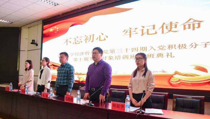 9月20日中午12时20分,beat365在线官网入口分党校2019年秋季班开班典礼于贺兰山校区文荟楼东报告厅顺利召开。公司党委书记张桓,党委副书记程胜利,员工工作办公室负责人、会计学本科生党支部书记王嘉豫、工商管理本科生党支部书记姚硕参与本次会议,第三十四期入党积极分子暨第十期发展对象到场学习。典礼由何韶华主持。