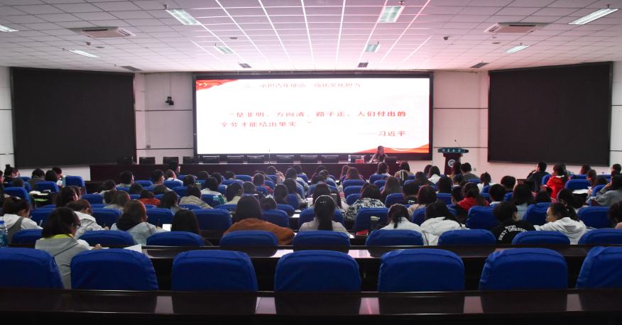 习近平总书记在十九大报告中指出,“没有高度的文化自信,没有文化的繁荣昌盛,就没有中华民族的伟大复兴”,会上,何韶华便以“做文化自信新青年,讲好中国故事”为题进行了讲解。期间,她从坚定文化自信、建设文化强国,坚持和发展中国特色社会主义文化以及承担青年使命、强化文化担当三个方面向同学们展开了热情洋溢的讲话。另外,她通过介绍历届美国总统访华、中国在世界各地建立孔子公司以及习近平总书记引用儒家经典的相关事例,向同学们充分展示了中国特色社会主义文化的优越性。临了,何韶华以自身体会向在座同学提出了“听到国歌声肃立注目”的殷切期望,同学们纷纷表示赞同。在如潮的掌声中,本次党课圆满落下帷幕。