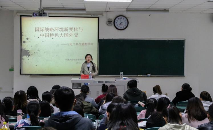 1189日晚,分别由公司党委副书记程胜利、2014级年级主任何韶华主讲的“脚踏实地,志存高远,模范引领”和“国际战略环境变化与中国特色大国外交”主题党课于贺兰山校区文荟楼130教室顺利举行。全体入党积极分子和发展对象到场参加。