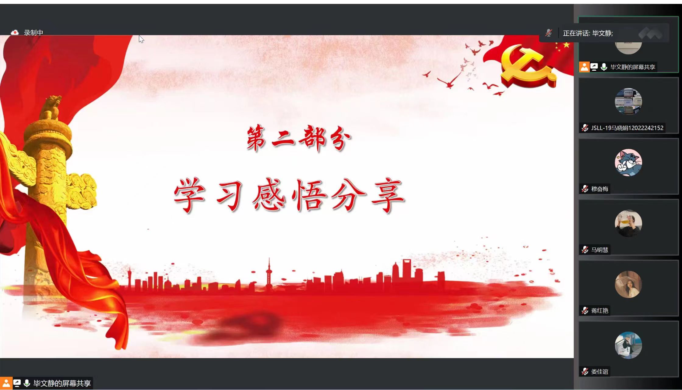纯洁党、严格党、勇敢党、温暖党四个小组党员代表分别就本次学习进行分享,各小组代表从党员作风、民生福祉、中国式现代化、人与自然、教育、伟大复兴及高质量发展等方面分享了自己本次学习的收获和感悟。孙文元从青年工作的重要性这一角度分享了自己本期的学习心得,并对支部本次的学习进行了总结。