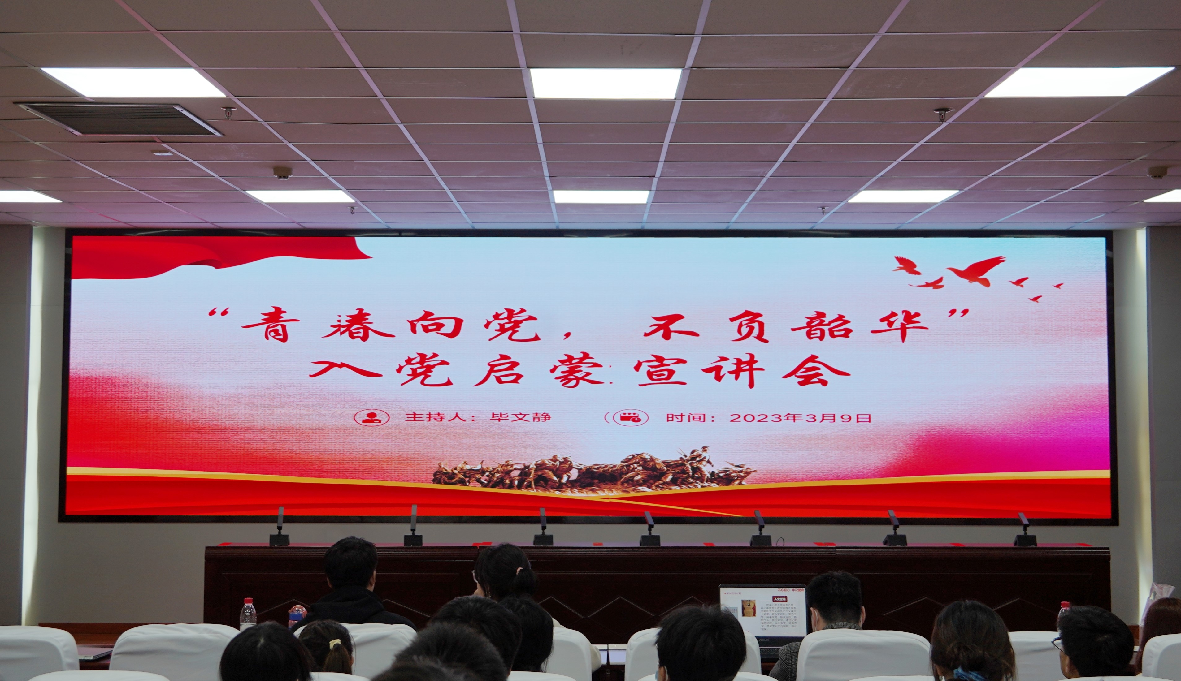 3月9日晚,beat365在线官网入口(西部发展研究院)“青春向党,不负韶华”入党启蒙宣讲会于贺兰山校区文荟楼316室顺利举行。经济学本科生党支部、会计学本科生党支部代表,团委组织部代表和2022级全体本科生参加本次会议。本次会议由会计学党支部代表毕文静主持。