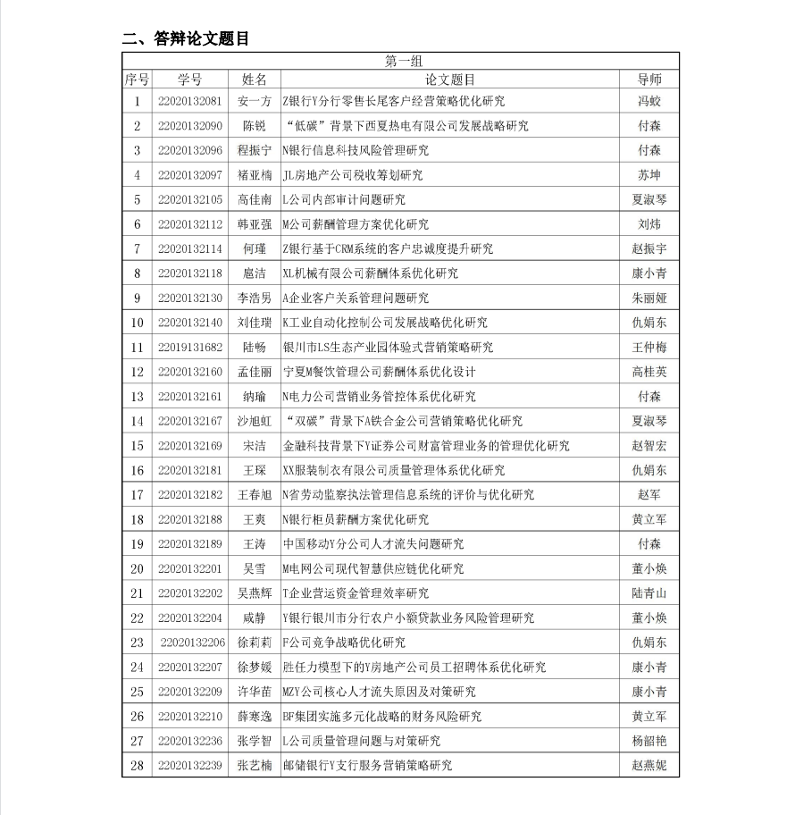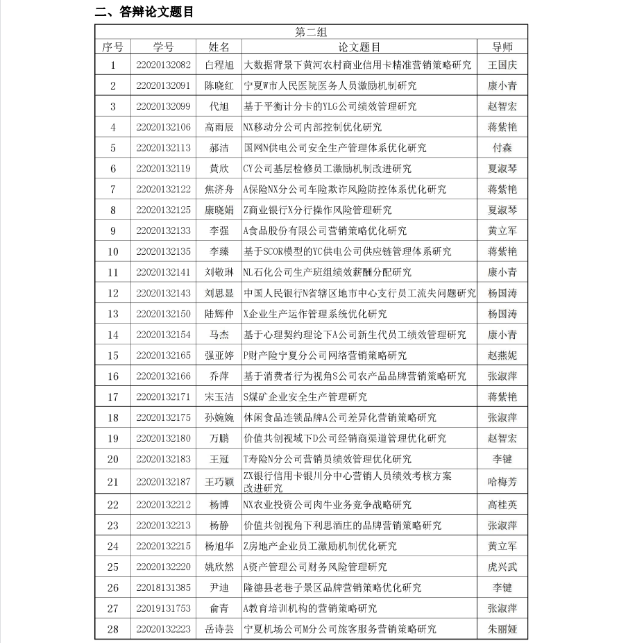 beat365在线官网入口2023届工商管理硕士(MBA)学位论文答辩 (第二组)