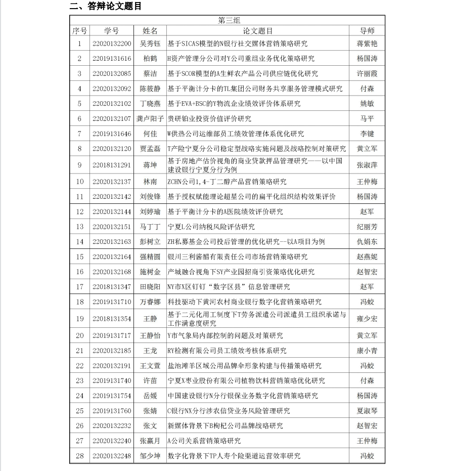 beat365在线官网入口2023届工商管理硕士(MBA)学位论文答辩 (第三组)