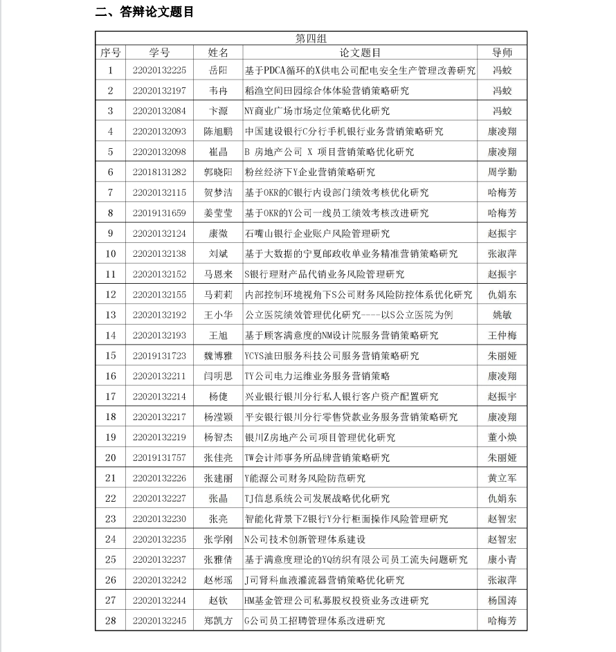 beat365在线官网入口2023届工商管理硕士(MBA)学位论文答辩 (第四组)