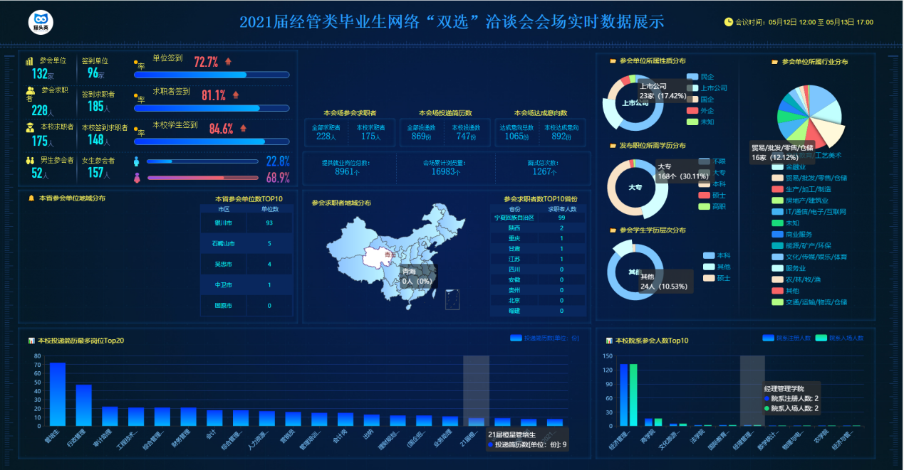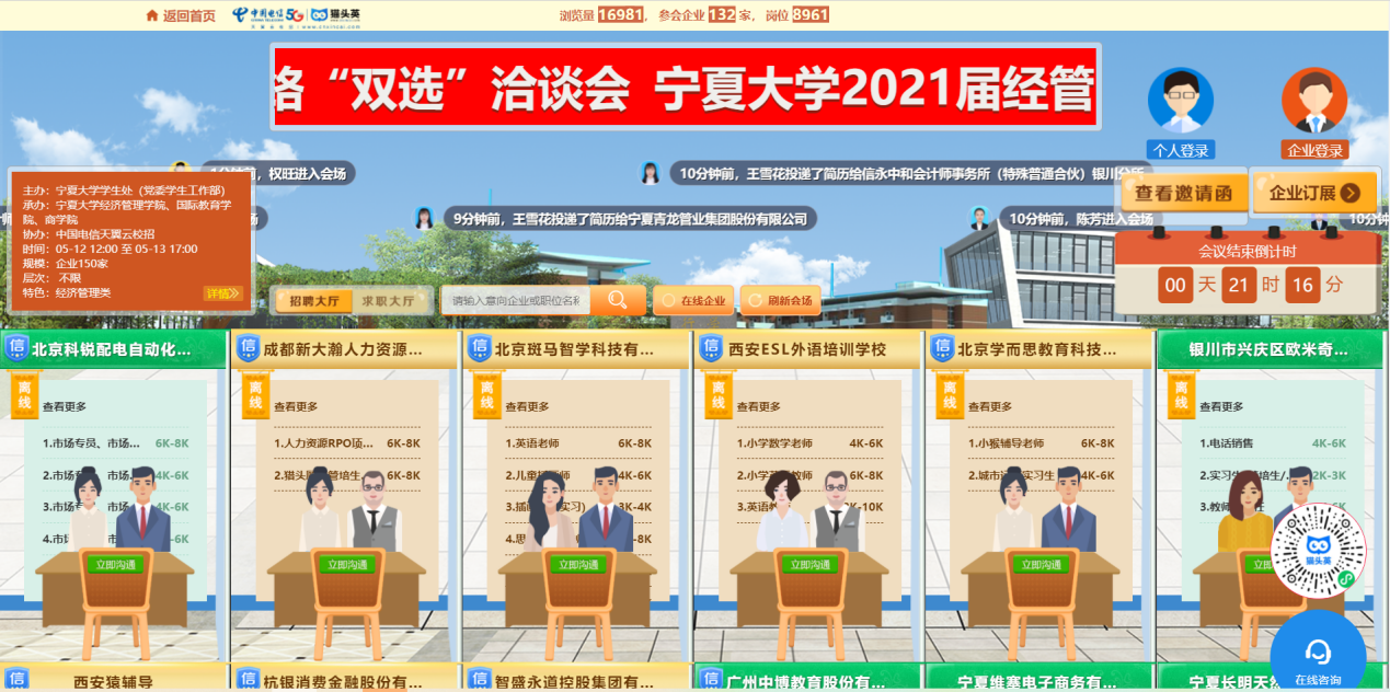 为全力做好公司2021届经管类毕业生就业工作,满足毕业生就业与用人单位招聘需求,公司积极探索“新媒体线上招聘”模式,搭建就业“云平台”。5月12日由beat365员工处(党委员工工作部)主办,beat365在线官网入口、国际教育公司、商公司承办的beat3652021届经管类毕业生网络“双选”洽谈会,为用人单位和毕业生提供“云端”相会、求职招聘的平台。截止下午6点,共有132家用人单位参会。