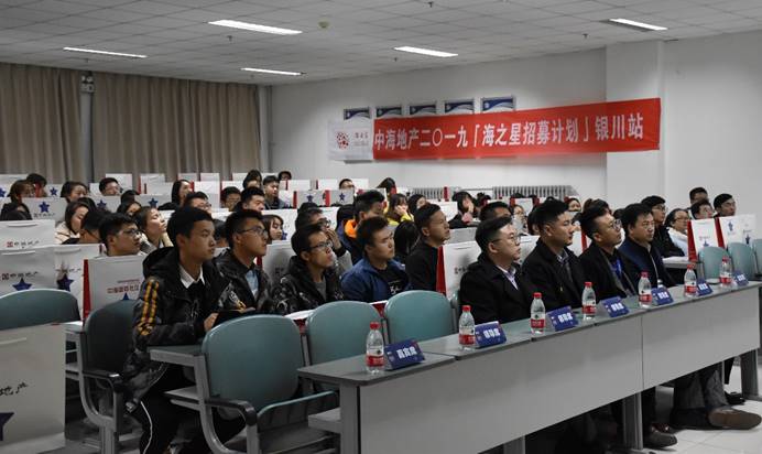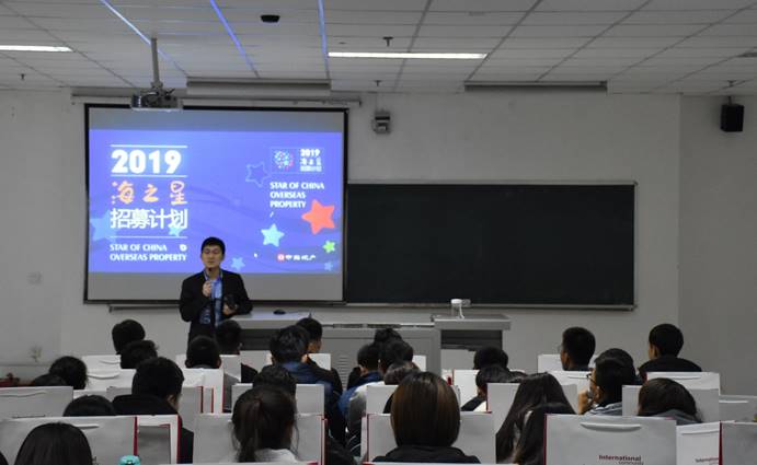 “天生一世之才,自足一世之用。”11月20日晚19:00,中海地产于贺兰山校区文荟楼132室举办了“2019海之星招募计划”招聘宣讲会。中海地产营销管理部经理吴锋、综合管理部经理苏丁奕、珑湾案场经理刘元成和中海城案场经理王强强前来参加。
