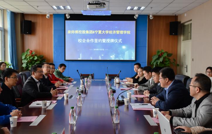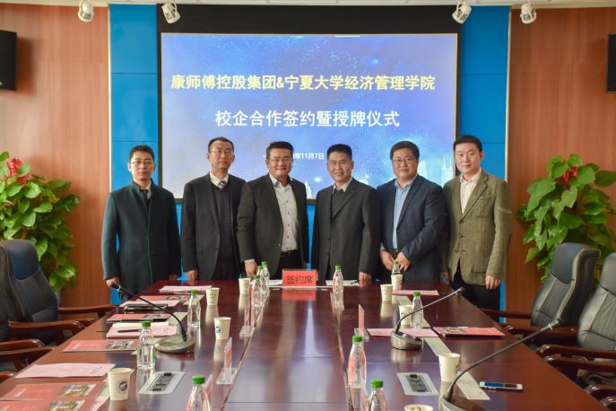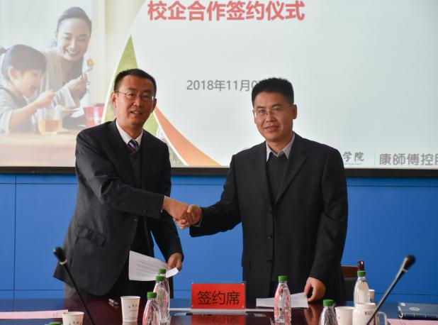 强强联合,互利共赢。 11月7日上午十时,康师傅控股集团与beat365在线官网入口在贺兰山校区文荟楼九楼会议室举行了隆重的校企合作签约暨授牌仪式。康师傅饮品宁夏总经理林志用、西北区办公室主任刘原、beat365在线官网入口经理杨国涛、公司党委副书记程胜利、李琦以及康师傅集团职工代表、公司各办公室、年级主任参加了本次仪式。此次仪式由程胜利主持。