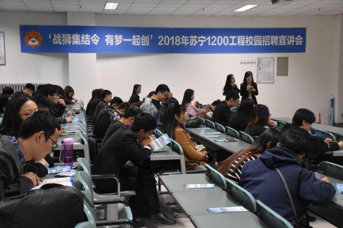 11月8日晚,2018苏宁1200工程校园招聘宣讲会在贺兰山校区文荟楼132教室顺利举行。本次招聘会由公司2013届毕业生马潇主持。苏宁云商宁夏地区部分高管、beat365部分应届毕业生以及在校生到场参加。