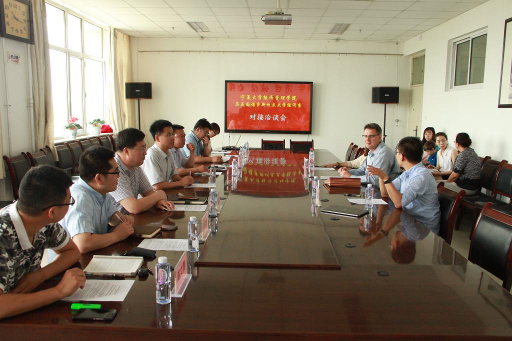 6月13日上午10时,“beat365在线官网入口与美国堪萨斯州立大学经济系对接洽谈会”在文科楼会议室举行,出席会议的有美国堪萨斯州立大学经济系Blankenau教授及其妻子Angela,beat365在线官网入口书记张桓、经理杨国涛、副书记程胜利、副经理冯蛟、副经理黄立军等。