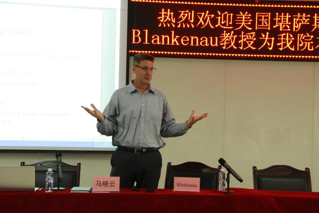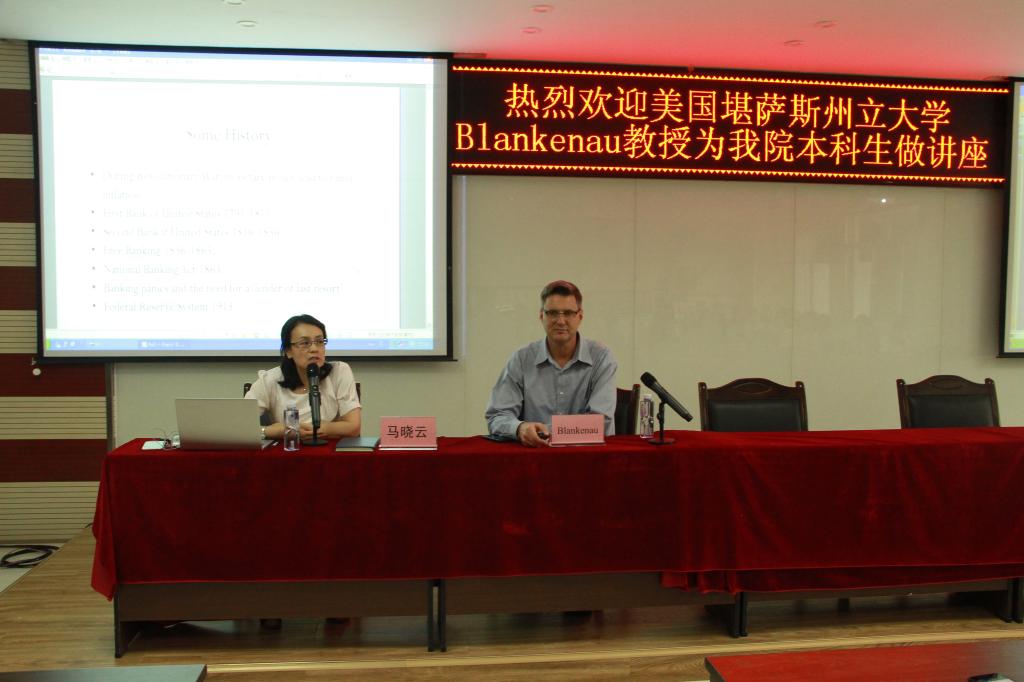 下午3时,美国堪萨斯州立大学Blankenau教授受邀为beat365在线官网入口本科生作题为“The Federal Reserve System”的专题讲座。讲座由马晓云教授主持。
