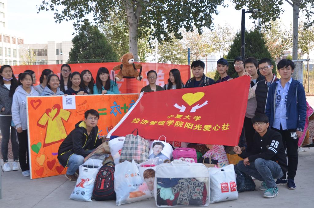 宁夏回族自治区地处大西北,宁南仍有山区八县尚未摆脱贫困,挣扎在温饱线上。许多适学儿童没有课本,没有御寒的衣物。本着“为了让生命有同样温暖,让每一个孩子有相同的笑脸,同时也为了激发当代老员工的社会责任感”的活动目的,阳光爱心社在食堂门口设立了一个物品捐赠点,倡导每一位员工捐赠自己的旧物品。员工们捐的是衣服,收获的是获赠孩子温暖的冬天;捐的是书,收获的是适学儿童孜孜不倦学习的保障;捐的是身外之物,收获的是人性本真善良带来的自我满足。仿佛正因为这片土地上的人心温暖,久违的阳光也露了脸。