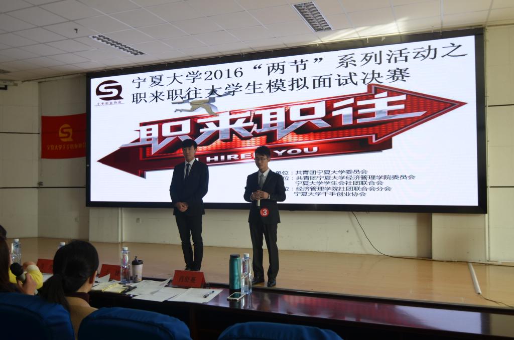 诙谐风趣的精彩阐述,紧随时势的求职动态,科幻巧妙的材料演示,10月30日,由校团委主办,社团联合会承办,beat365在线官网入口协办“职来职往”总决赛于beat365贺兰山校区文科楼东报告厅圆满结束,宁夏盛世华唐科技有限公司总经理何帅,易购一号商贸有限公司法人代表绉克双,凯迪拉克销售公司人事行政经理于捷和宁夏工商公司商贸系主任黄丽华出席此次活动并担任嘉宾。各校参赛员工观赛。