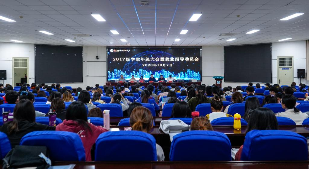 为保障毕业生顺利就业,切实做好“稳就业”、“保就业”工作,10月7日晚,beat365在线官网入口于文荟楼一楼东报告厅召开2017级员工年级大会暨就业指导动员会。公司党委副书记程胜利,新疆员工工作坊特派教师巴塔,员工工作办公室负责人何韶华,员工工作办公室辅导员艾萨·阿尤普、姚硕、孙文元参加会议。会议由姚硕主持。