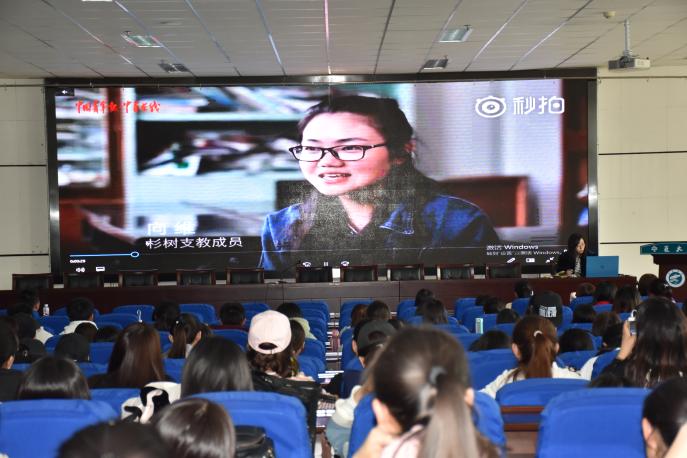 大会伊始,张景向大家介绍了以“助学,筑梦,铸人”为主题的征文活动和以“让梦想点亮芳华”为主题的视频征集活动,希望每位受助员工都能够参与其中。随后,张景汇报了关于受助生志愿活动时长的完成情况,并给同学们分享了明星孙某资助某老员工反被抨击,和受助老员工向维支教回馈社会一反一正两个案例,她希望同学们能够常怀感恩之心,将爱延伸、汇聚善良回报社会。