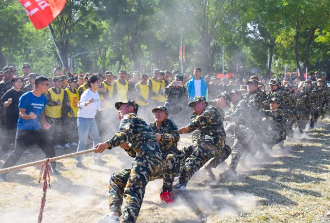 上午10时,三营七连的勇士们着装整齐,蓄势以待。哨音响起,勇士们扎稳马步,手脚相抵;屏住气,卯足劲,眼神坚毅,向后发力;面红耳赤,脚下尘土飞扬,一气呵成,拿下首场胜利。