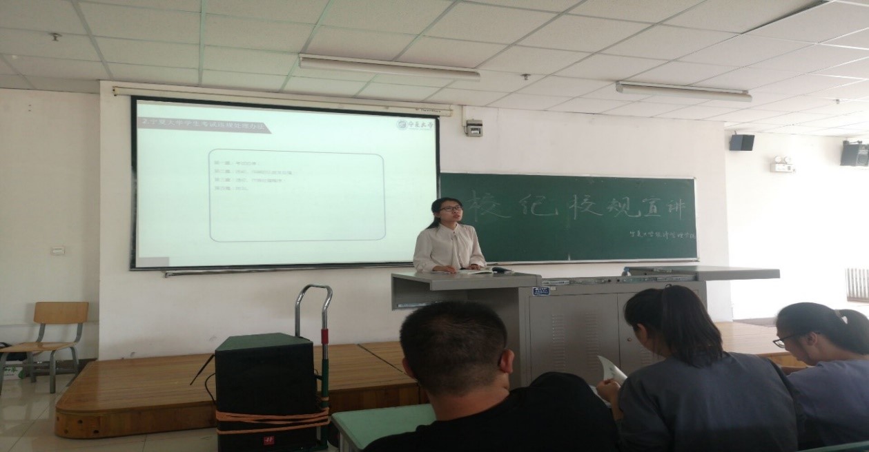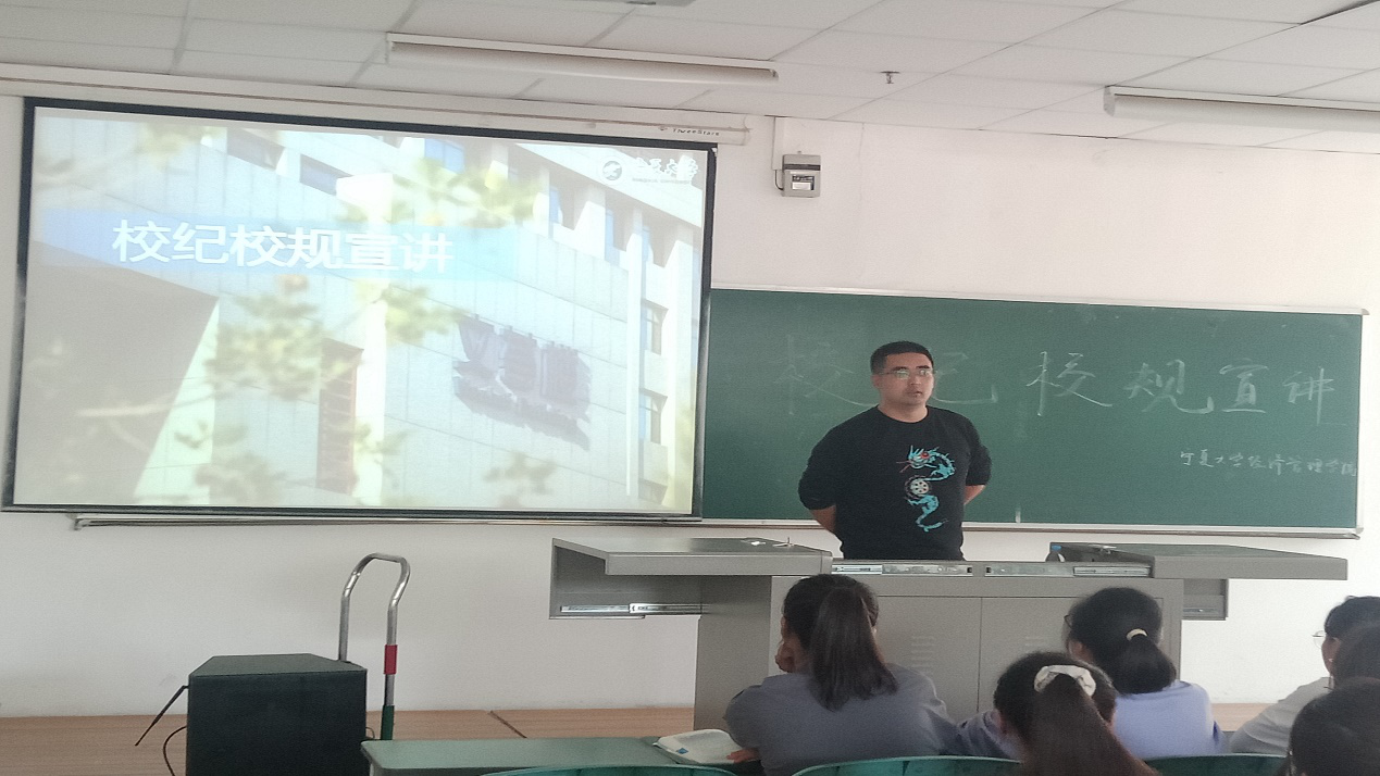 会议伊始,何韶华向同学们强调了校纪校规的重要性及员工手册考试相关内容。期间,何韶华向新生普及各种违纪行为及处罚措施等。