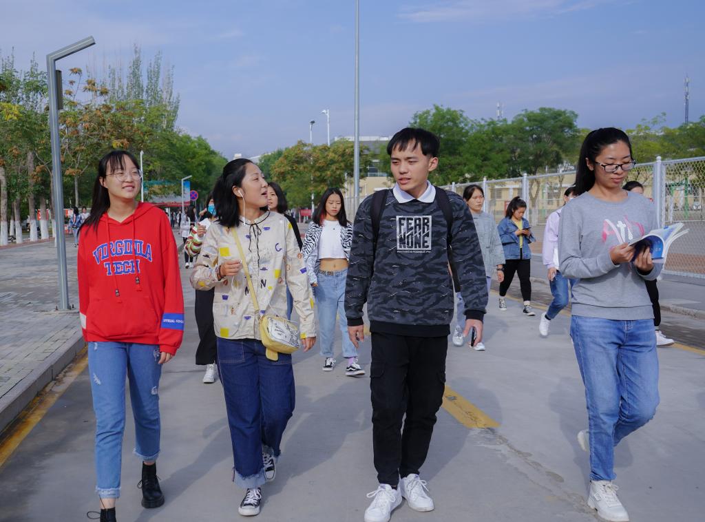 从贺兰山校区出发,一行人一路沿着农公司、音乐公司、美术公司走着,悠扬的练琴声传入耳中,路旁陈设着一系列创意作品,都显示出了校园的活力。绕过德勤楼,他们通过宁大桥进入怀远校区,环绕金波湖在健身跑道上徐徐漫步,晨风微起,碧波荡漾,金波亭周围荷叶铺陈,露珠晶莹剔透。清晨宁静的凌云广场也别有一番风采。同学们谈笑风生,赞叹于眼前的美景。经过图书馆,他们与背着书包匆匆而入的学子们不期而遇,也被beat365浓厚的学习氛围深深地感染。穿过地下通道,来到了文萃校区,遇见了在操场上晨跑运动的一只只身影,勃勃生机扑面而来。来到老员工活动中心,物流管理班的班主任助理曾理鸿向同学们介绍了其内外构造,也讲到了它有着为公司开展的各项员工活动提供场地的作用。返回到贺兰山校区,参观校园的活动顺利结束。