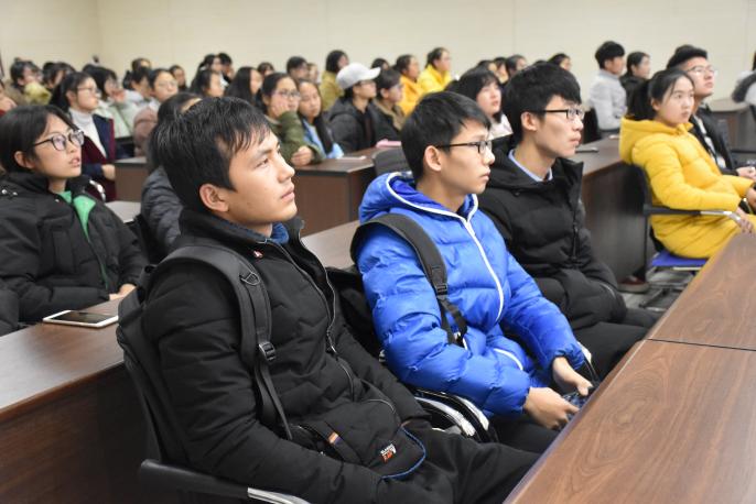 首先,他以人类从原始社会到现代社会飞速发展的短片开始本次讲座内容。随后,他利用阿尔博特“7:38:55表现定律”来说明行为、语言、文字在第一印象中所占的比重,并通过职场事例细致讲解。同时,他向同学们简单介绍了礼仪以及仪容仪表的相关知识,并为现场的同学讲解微笑、站姿以及握手的规范标准。讲座的最后,他强调了与人沟通能力的重要性,并希望同学们通过倾听、赞扬和提问的方式提升自己的沟通技能。本次讲座在同学们热烈的掌声中圆满结束。