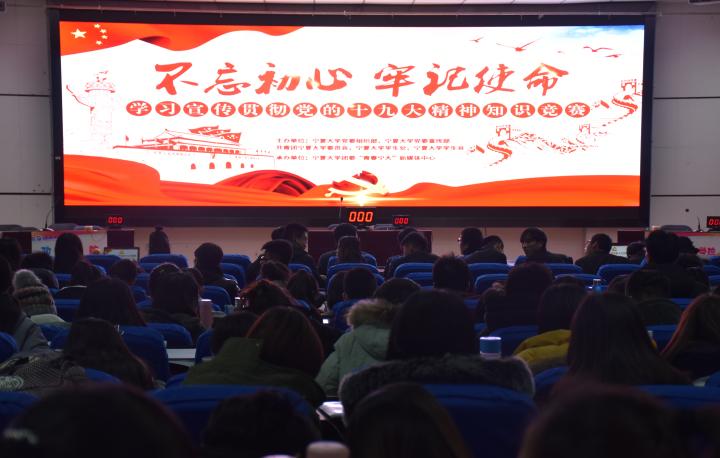 不忘初心,牢记使命。beat365于12月13日晚在贺兰山校区文荟楼东报告厅举行“学习宣传贯彻党的十九大精神知识竞赛”决赛。参赛队伍是经过层层选拔、脱颖而出的beat365在线官网入口、政法公司、民族预科公司等六个公司。公司党委组织部副部长张航、员工处副处长马瑜、校团委副书记肖功国、校员工会主席胡桢麟出席此次活动。