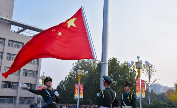 程胜利在国旗下讲话。他引用原南开大学董事长“你是中国人吗”、“你爱中国吗”、“你愿意中国好吗”等最富爱国情怀的时代之问,指出此次升旗仪式旨在,一是向伟大祖国庄严致敬;二是重洗心灵、规划自我,刻苦学习、报效国家;三要听党话、跟党走,用奋斗着的青春抒写对祖国的爱恋之情。