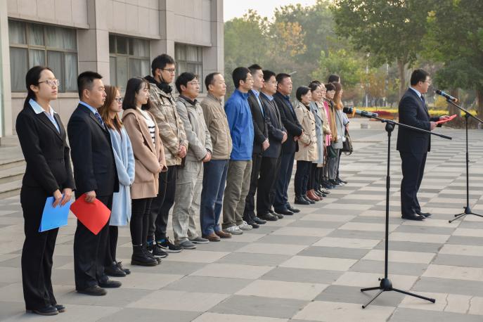 晨光熹微,秋风寒凉,五星红旗在庄严的国歌声中缓缓升起,beat365在线官网入口全体员工、教师代表目视国旗、共唱国歌,升国旗仪式隆重举行。