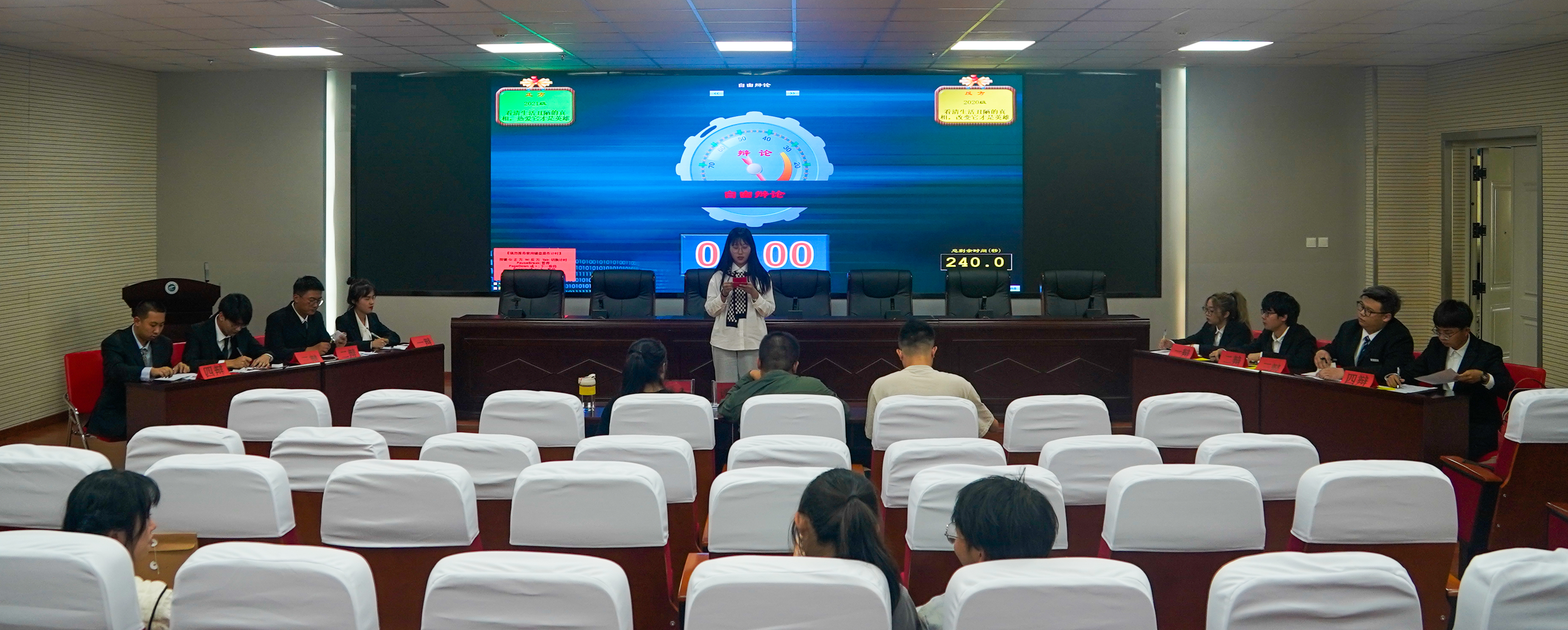 比赛中,四支队伍经历两场博弈。“看清生活丑陋的真相,热爱/改变它才是英雄主义”、“如果非常辛苦,还应该/不应该选择那种滚烫的人生”新颖有趣的辩题引发辩手和观众们的层层深思。辩场之上,辩手们巧取古例、沉着交锋,他们妙语连珠,字字入耳,句句入心;辩场之下,他们尽其所能寻找论据,筑起不破不倒的逻辑体系。经过激烈的论辩,最终大二代表队和团委代表队取得了决赛的胜利。各场评委对本次比赛进行精彩点评,指出了各位辩手存在的不足,并对选手们的用心准备和出色表现做了肯定。