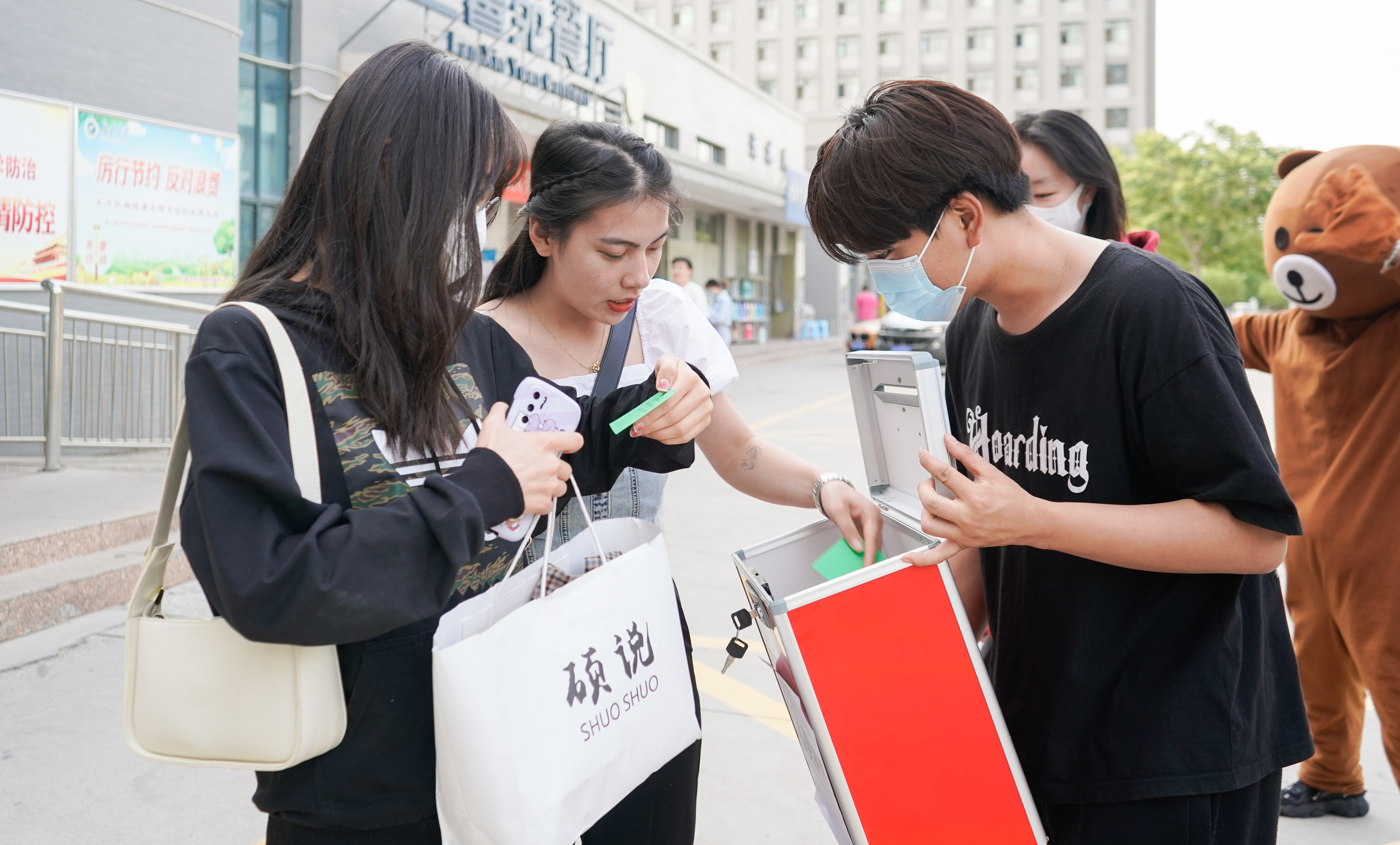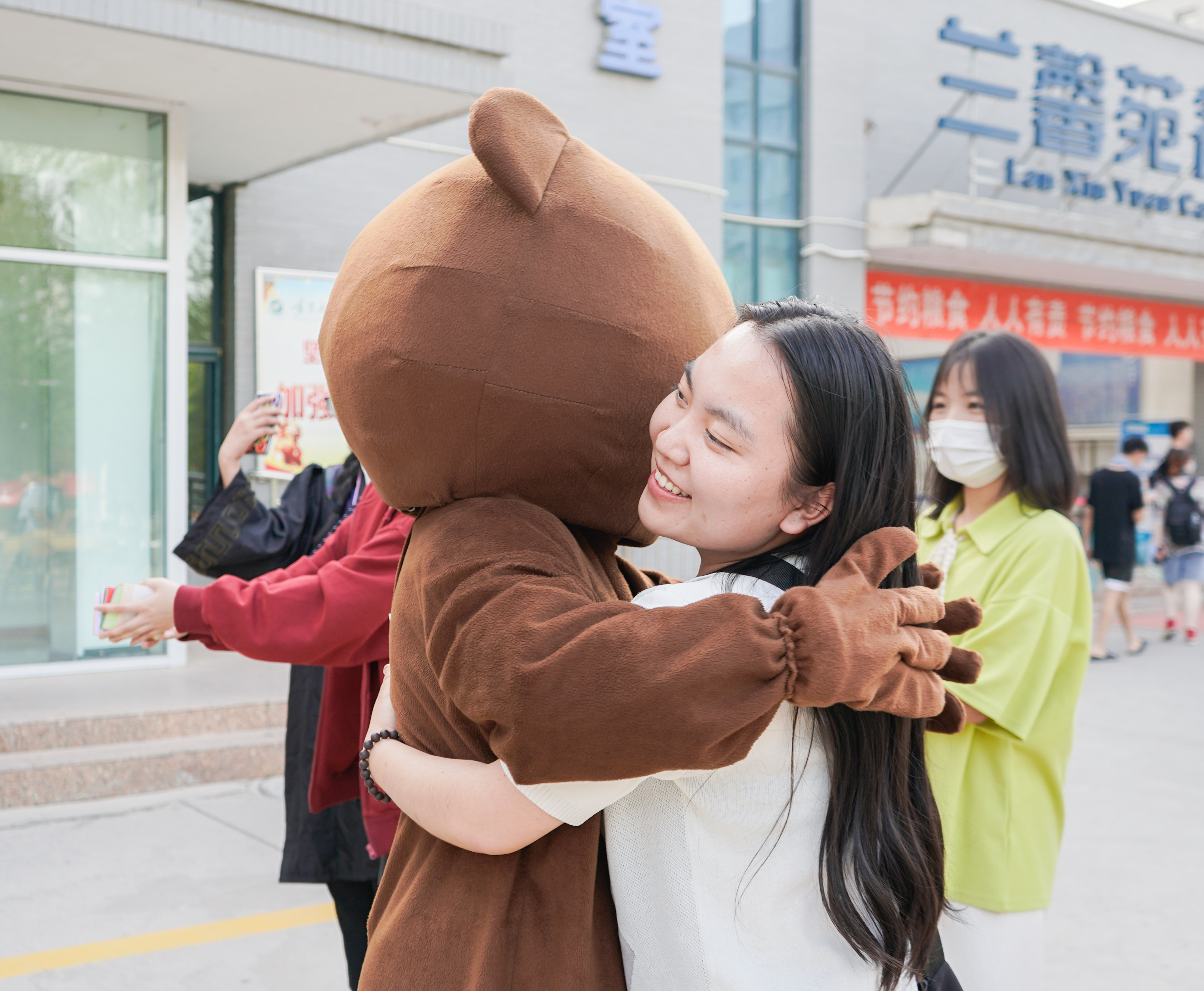 本次活动面向全院员工。活动包含“拥抱玩偶熊”与“抽取祝福卡片”两个环节。活动旨在通过与玩偶熊拥抱的方式,缓解同学们的学习及生活压力,通过随机抽取祝福卡片,收取并传递美好祝愿。