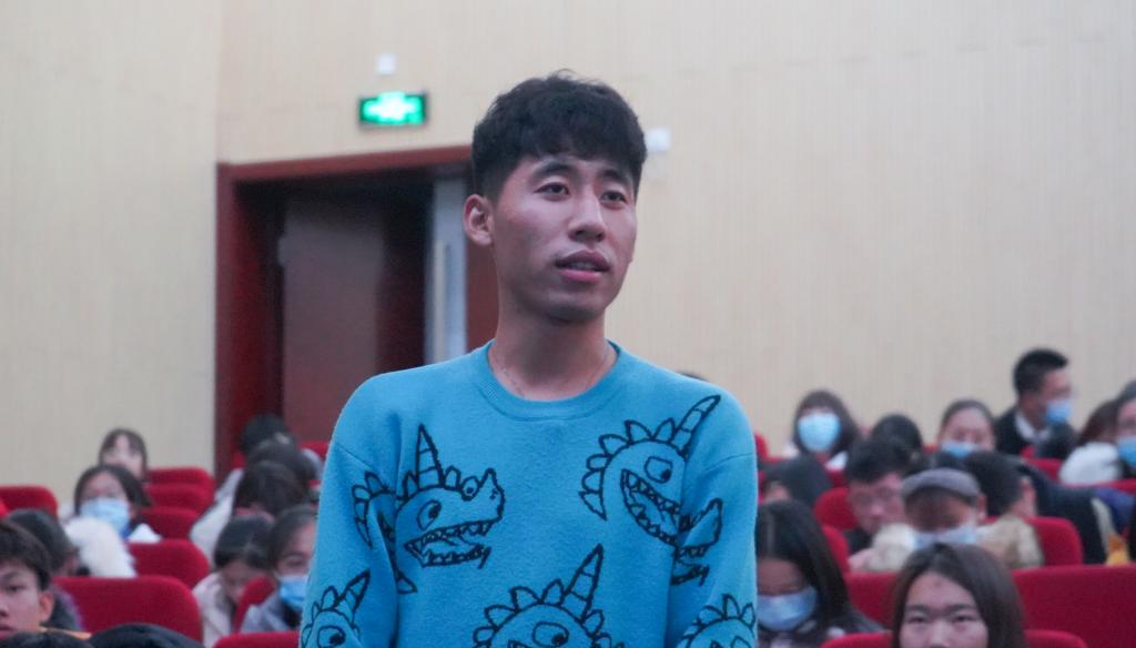 陈娜娜从自身考研的经历说起,详细地剖析了考研的题型,分享了一些相关的解题技巧,并告诉同学们书山有路勤为径,“多做多练”才是登顶的唯一方法;付小娟从学习、生活、未来发展三个方面精炼简要地分享了她的老员工活,并鼓励同学们要树立宏伟目标、坚定理想信念,心有所向,才能终有所得;杨百慧告诉同学们要充分利用大学时光,在提升个人能力、培养健全人格的同时,也不忘保持一颗能在繁忙中停下脚步,欣赏生活细微处的美好的自然心;李金凤用幽默诙谐的语言分享了她的快乐听课法、创造性总结法等一系列创意学习方法,并在日常生活、专业建议方面提出自己的观点与看法,令在场同学颇有感悟。在后续的答疑环节中她们对“考研还是考公”“转专业”等老员工关注的热点问题进行了解答,见解独到,使同学们受益良多。