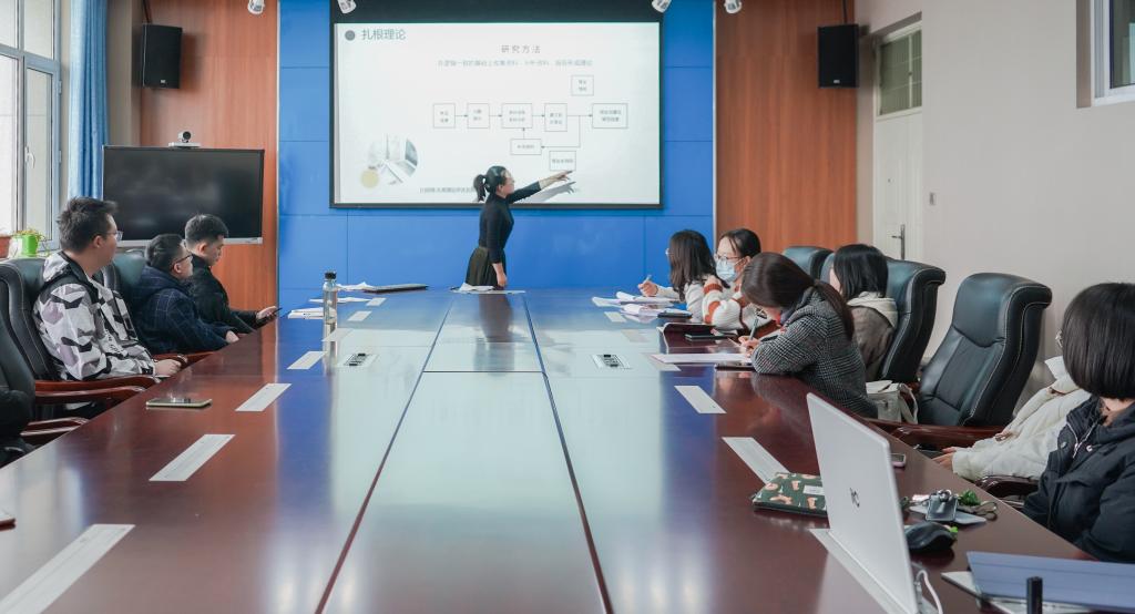 文献资料是针对某一方面主题,在搜集大量文献资料后进行综合分析再撰写而成的,刘宇娜从文献综述概念着手,通过详细分析“综”与“述”关系,指出要对文献资料进行综合整理后进行全面而深入的论述。选题是文章第一吸引力,因此选题要有针对性、可行性。文献检索方式丰富而多样,但收集的材料要具有代表性。刘宇娜分享了自己以前遇到的检索问题,并以此为例告诉参会同学阅读文献要做到泛读与精读相结合,同时要养成总结的习惯。杨慧基于自身研究经验,将文献综述的撰写分为基本思路、资料收集、三级编码、形成理论模型四个部分。明确基本思路要做到从资料中产生理论,自比较中分析优劣,灵活运用文献,从而做到逻辑严谨、心中有数。她还为参会员工列举分析了多种资料收集方案,目的抽样清晰明确、理论抽样注重数据的丰富性,滚雪球抽样在特定时期亦不失为一种可靠的方法。她还强调要注重建立概念与范畴之间的联系,将原始资料概念化、具体化、可视化。分享结束后刘宇娜、杨慧对在场同学的提问进行详细的解答,本次交流会在同学们热情洋溢的讨论声中圆满结束。