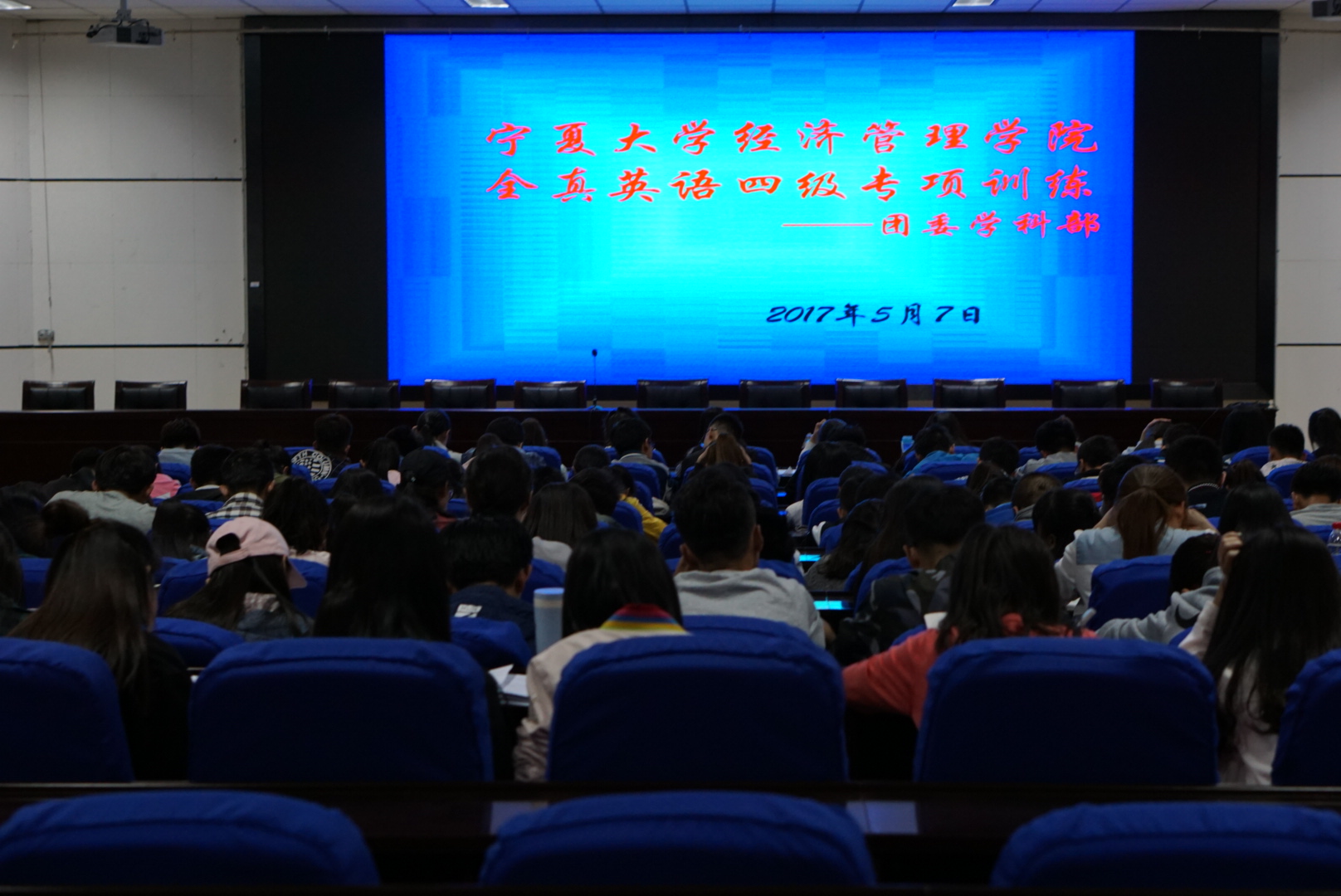 随着全球化程度的不断加深,英语不仅作为一门语言和交流工具日渐流行,更是被提升到了必备技能的范畴。为进一步提升公司在大学英语四六级考试中的通过率,5月7日晚,在贺兰山校区文科楼东报告厅,由beat365在线官网入口团委学科部、千手创业协会和阳光英语俱乐部共同主办的周日英语补习辅导活动如期开展。2016级四级待考员工全员参与。