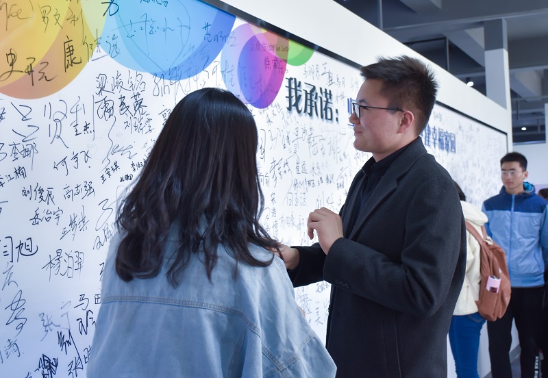 总有一些阳光照耀不到的地方,我们只有看清黑暗才能避免踏进毒品的深渊。活动伊始,解说人员向同学们介绍了中国禁毒史上的里程碑,充分彰显了我国厉行禁毒的一贯立场和主张。接下来进入到非常有趣的环节,当同学戴上吸毒模拟眼镜后,通过不同时间段面部发生的变化,可以看出毒品对人的危害之大,起到深刻的警醒作用。同时,解说人员解释了毒品的特征,展览馆中也陈列了许多种毒品的模型——美丽的外表下却藏着致命的诱惑。接着,艾萨与同学们纷纷在禁毒签名墙上签下了自己的名字,表明了抵制毒品的坚定决心。最能吸引同学们目光的还是展览馆里中国矿业大学银川公司员工们关于禁毒的手工作品和创意绘画,深刻的寓意和别出心裁的设计蕴含着同学们对毒品的独特认识和积极参与禁毒活动的高涨热情。活动渐入尾声,同学们自由地观看馆内的禁毒微电影和吸毒案例,了解“甜蜜”的毒品如何把本该幸福的人生腐蚀得残破不堪。在参观结束之后,全体老师、同学以及讲解人员合影留念。