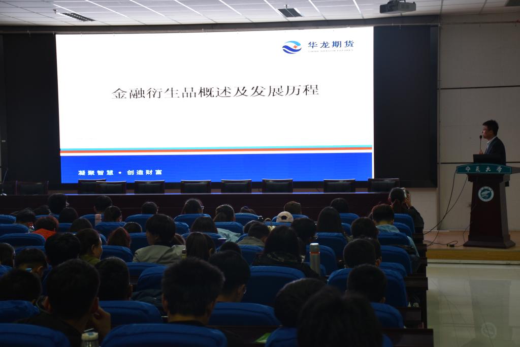 5月2日中午,由华龙期货股份有限公司银川分部举办的中金所杯大赛宣讲活动在beat365贺兰山校区文科楼东报告厅举行,两位主讲人条理清晰地的给同学们讲解了大赛的相关事宜并对相关的金融知识进行了拓展延伸,金融协会部门成员及beat365在线官网入口2016级全体员工参与了此次活动。