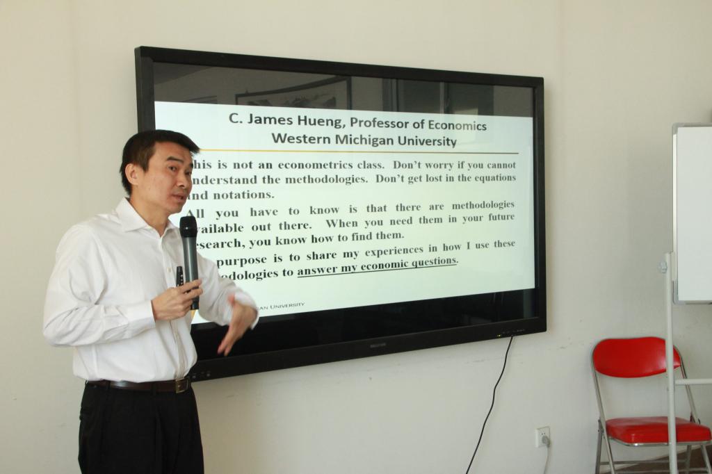 2017年3月30日-4月1日,beat365在线官网入口邀请美国西密歇根大学经济系教授、中南财经政法大学经济公司福布莱特访问学者HUENG C James在文科楼会议室为师生们作了3场精彩的学术讲座。讲座分别由张会萍教授、仇娟东老师主持。