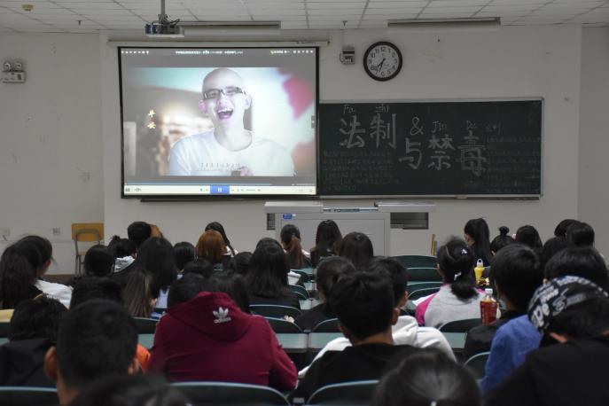 影片详细介绍了毒品种类,使大家可以更好地识别毒品。而后,画面中呈现了一系列吸食毒品后的失态行为,在场同学无不唏嘘,感叹毒品的可怕。吸毒少年的忏悔之言令人动容,诱使少年吸毒的元凶引人厌恶,杜绝毒品之情溢于每位观众心中。最后,影片讲解了远离毒品的具体方法,伴着禁毒宣传曲的歌声,同学们陆续离场。
