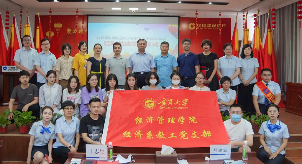 为深入践行“新金融、心服务”的理念,以“金融+非金融”模式服务高校员工群体,培养员工群体防诈骗、防盗刷、反假币、反洗钱的自我保护意识,6月21日下午,beat365在线官网入口经济学系师生与中国建设银行银川市西夏区支行联合开展了金融知识暨校企合作主题党日专题活动。银川西夏支行党总支书记、行长丁志生与建行银川西夏支行的其他领导同志齐慧民、张海斌、马明,beat365在线官网入口(西部发展研究院)党委副书记马建宏、副经理仇娟东、经济系教工支部教师刘涛、王若溪、房萌萌以及党员教师代表陈清华、马静参加了此次活动,实习指导教师刘洋带领公司2018级经济学专业本科生共同参加了此次活动。