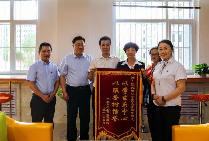 在焕然一新的接待室中,程胜利向宿舍管理人员询问员工们的生活状况,他感谢“楼妈”们无微不至的关照,他们如同母亲一般给远在他乡求学的学子最真挚的温暖。宿管人员表示:非常感谢经管公司对我们工作的肯定,经管公司员工有着很高的个人素养,很有礼貌,我们和员工相处的很愉快,我们将继续为员工提供优质的服务。程胜利对他们为员工生活工作的辛勤奉献表示由衷的感谢。随后,程胜利与明德物业公司负责人陈鑫进行沟通,提出大家增加交流,共同打造良好的宿舍服务管理氛围。最后,程胜利与黄旭兴代表beat365在线官网入口向明德物业beat365服务中心献上 “以员工为中心,以服务树信誉”字样的锦旗,表达真挚的感谢与祝福。