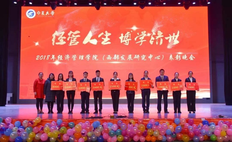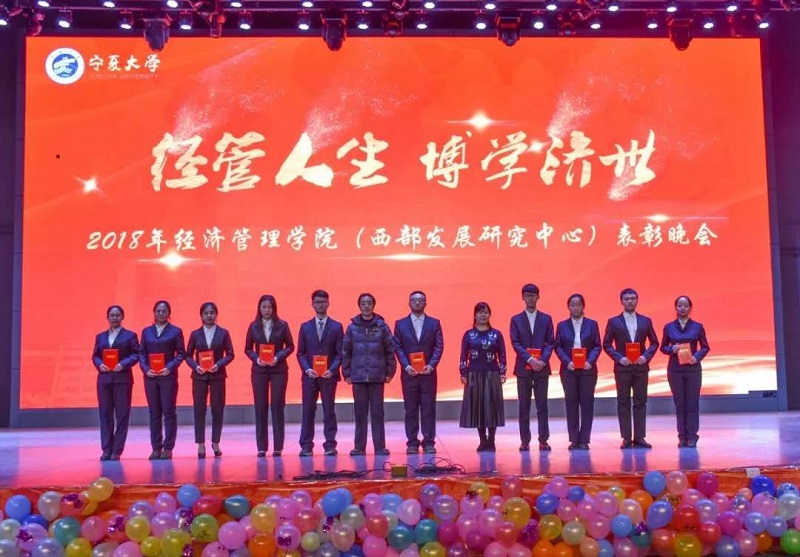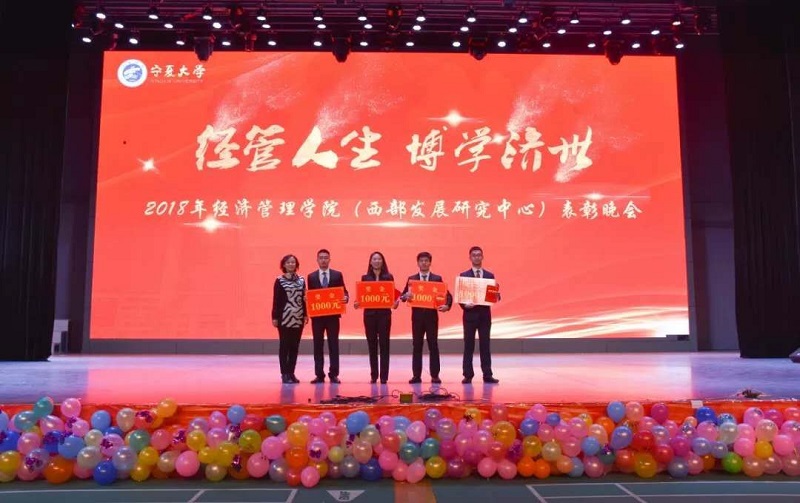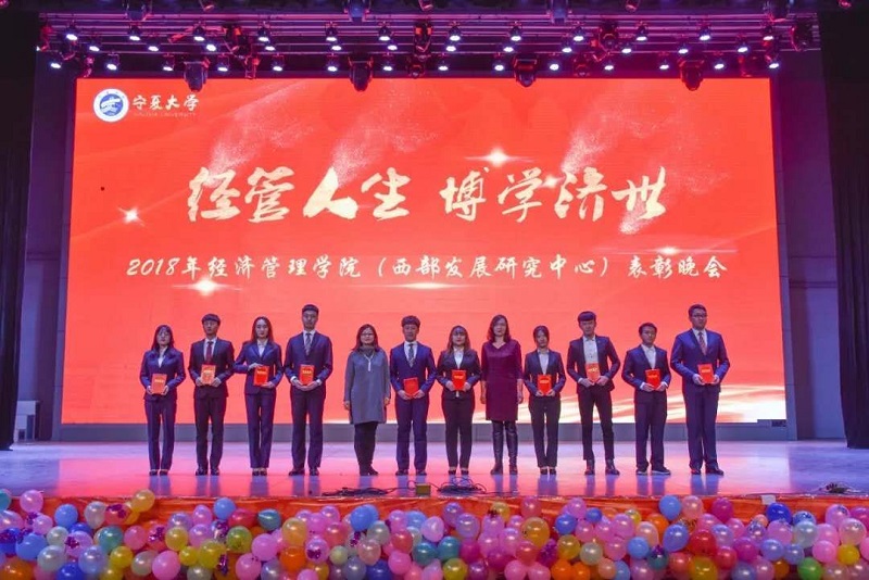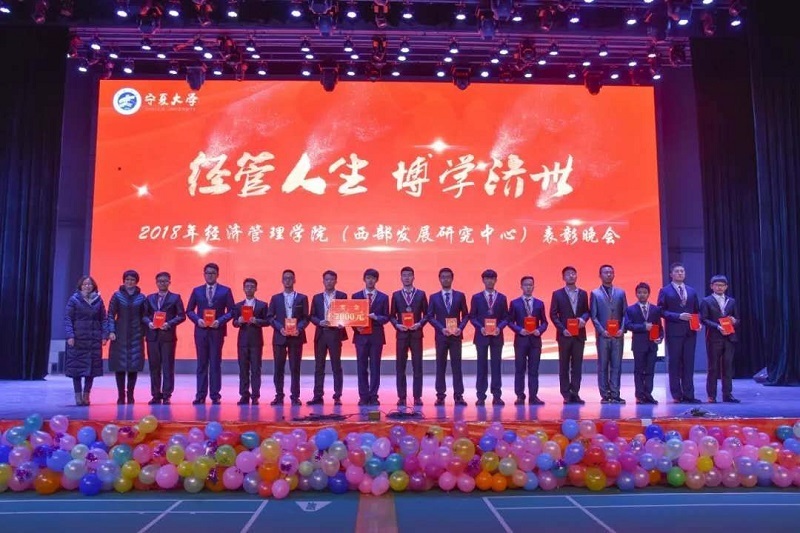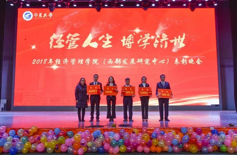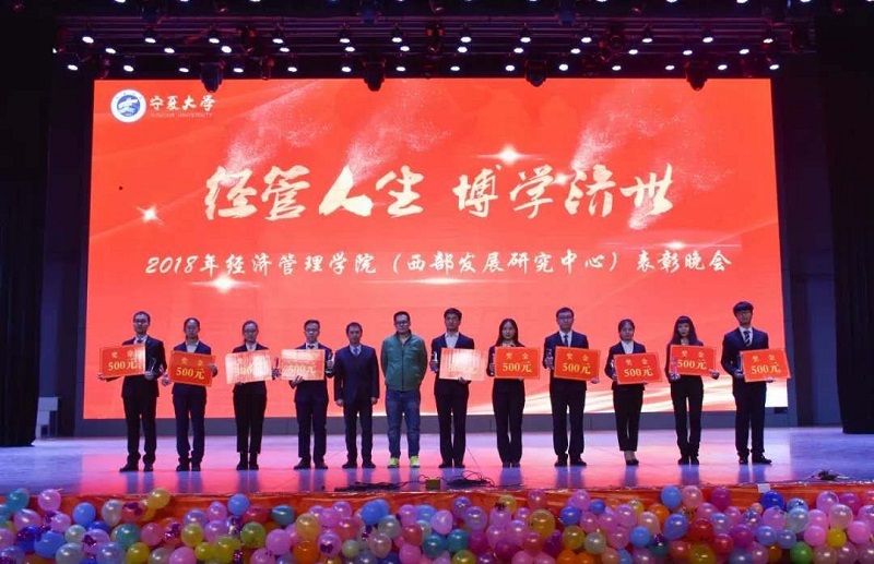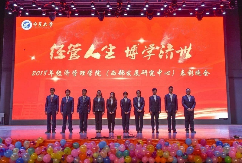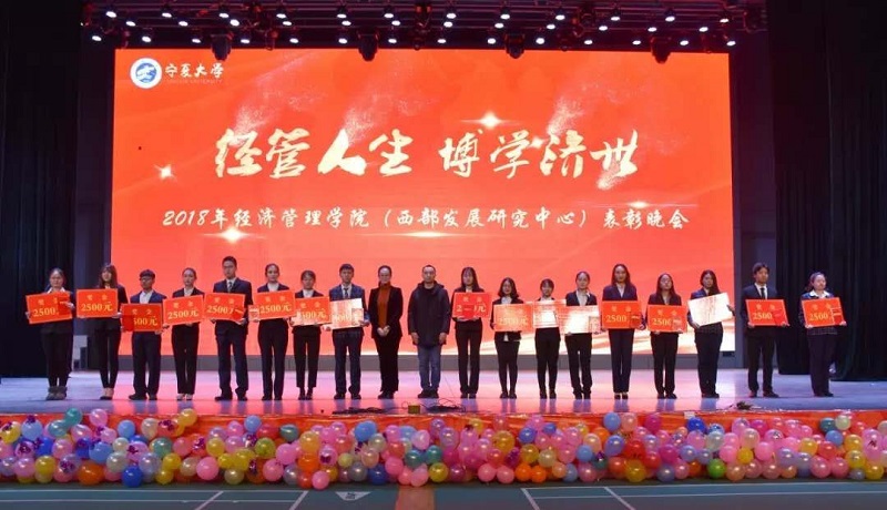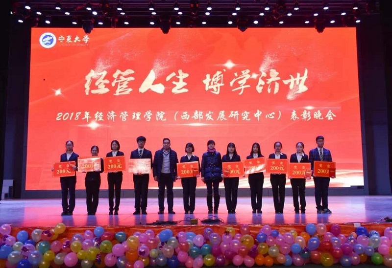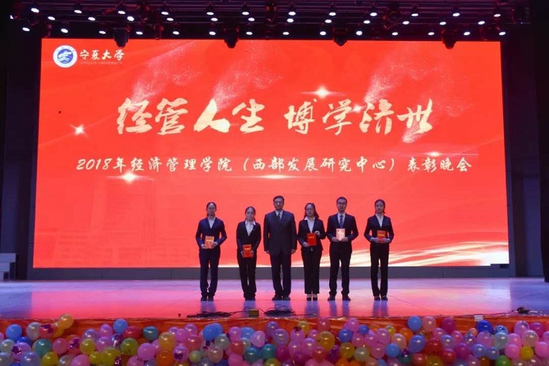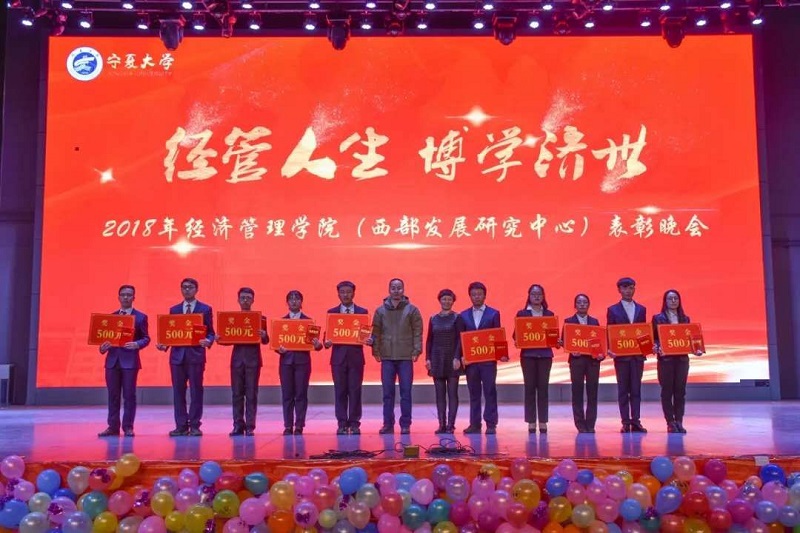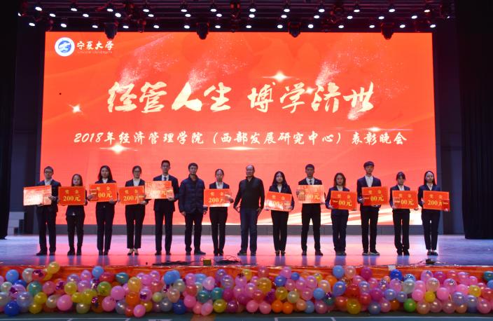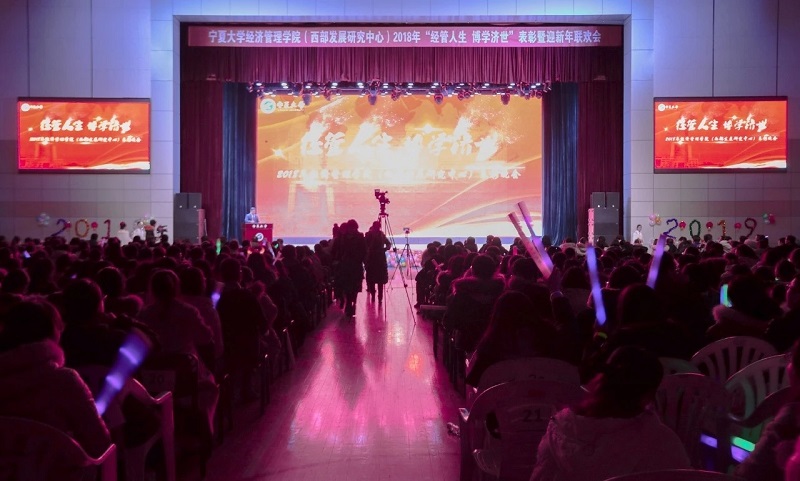 惜辞金犬,喜迎宝豕。细数戌年经管之硕果,力展亥年学海之高帆。12月28日,beat365在线官网入口(西部发展研究中心)2018年“经管人生,博学济世”表彰暨迎新年联欢会在文萃校区老员工活动中心隆重举办。特邀嘉宾宁夏康百行销公司市场处主管王宁、银川营业部部长周建军,贵州茅台酒宁夏经销商联谊会代表、银川新华百货连锁超市有限公司总经理周志红、贵州茅台宁夏回族自治区代表张仕飞,beat365原副董事长、beat365在线官网入口名誉经理左理教授,beat365在线官网入口和西部发展研究中心领导张桓、杨国涛、黄立军、王国庆、董小焕、马晓云,各办公室、系、支部负责人,全体教师,beat365团委、校员工会、各兄弟公司团学组织代表、在校全体本科生、研究生1600多人参加本次活动。