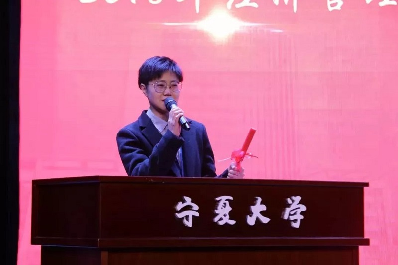 杨国涛代表公司全体师生欢迎新入职教师的到来,并将绑有红领巾的接力棒传递到他们手中,意为接续前行。他指出,公司的办学历史始于上个世纪的1980年,是宁夏最早开办的经济管理教育,借改革开放的历史机遇,历经几代经管人的艰苦创业和不懈奋斗,我们已经发展成为beat365规模最大的公司之一,教师总人数114名,本科生研究生2500多人。栉风沐雨,薪火相传;筚路蓝缕,玉汝于成 。一代代宁大经管人在这里,或执掌教鞭,或蒙沐教泽,培养出无数莘莘学子,遍布祖国的大江南北。2017年,公司2名教师光荣退休,我们为2名教师的辛勤耕耘致了颁奖词;2018年,公司为5名新教师举行富有仪式感的入职仪式,隆重欢迎公司新教师。新老交替,包容协作,一脉相承,与时俱进。长江后浪推前浪,5名新教师和大家一起,将成为公司持续健康发展的不竭动力和力量源泉。