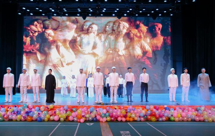 “三更灯火五更鸡”,不惧艳阳,不畏暴雨,你们是代表beat365在线官网入口参加宁夏回族自治区六十大庆的六十九名飒爽男儿。在四十五天不间断排练中,你们用汗水诠释责任,你们用黝黑的皮肤演绎男儿本色。你们有着坚毅之志,有着无我之怀,你们若一只只骄傲的鸟儿——载着希望与梦想,矢志不渝地向前飞翔。今日在此为你们授予勋章,愿青春回忆永恒,愿你们前程似锦。