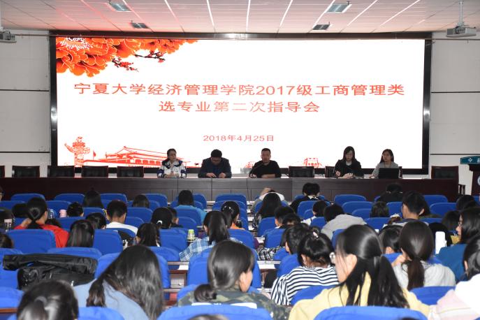 4月25日晚,beat365在线官网入口2017级工商管理类选专业第二次指导会议于beat365贺兰山校区文荟楼东报告厅顺利召开。出席本次会议的有公司党委副书记程胜利、副经理马晓云、员工工作办公室主任黄旭兴以及2017级辅导员张景。2017级工商管理类员工到场参加。本次会议由黄旭兴主持。