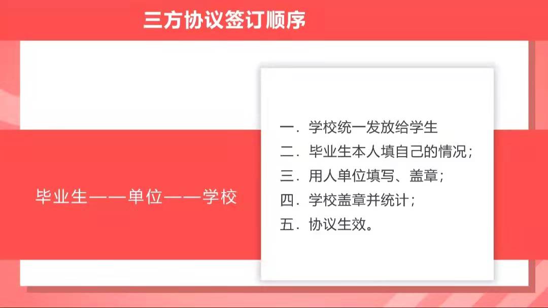 老员工在求职过程中要提高警惕,加强自我保护意识。吴楠表示应届生身份十分重要,同学们要保护好“应届生”身份。吴楠为大家比较了三方协议和劳动合同的区别,详细介绍了签订三方协议的签订顺序、违约金等重要问题以及在签订合同的时候的注意事项,包括相关条款、待遇、试用期等。同时,他介绍了合同中常见的陷阱,讲解了在求职前、求职中的就业安全应对策略。