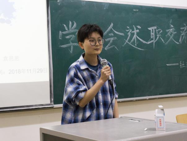 会议伊始,员工会主席牟玥颖进行致辞,紧接着,来自八个部门的部长们根据自己所做的PPT开始了此次述职大会。他们的介绍涵盖了自己所在部门的职能简介、工作完成情况以及部门的未来规划等方面。同时,各部门介绍了其新纳干事,表达了他们之于部门的重要性。“聚是一团火,散是满天星”,各部门希望在日后的工作和活动中,大家可以团结一心,互相协作,令团学星辰漫天,熠熠生辉。