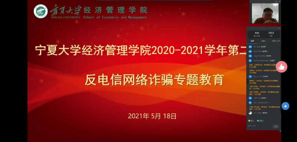 为做好对同学们的安全防范教育,增强同学们防范电信诈骗的意识,预防并切实减少网络电信诈骗案件的发生,保障同学们的财物安全。5月18日晚上,beat365在线官网入口关于反电信诈骗专题教育线上会议于钉钉群顺利举行。beat365在线官网入口(西部发展研究院)党委副书记程胜利、beat365在线官网入口团委副书记何韶华、艾萨·阿尤普、孙文元及beat365在线官网入口全体本科生参加了本次线上会议。会议由艾萨·阿尤普主持,程胜利主讲。
