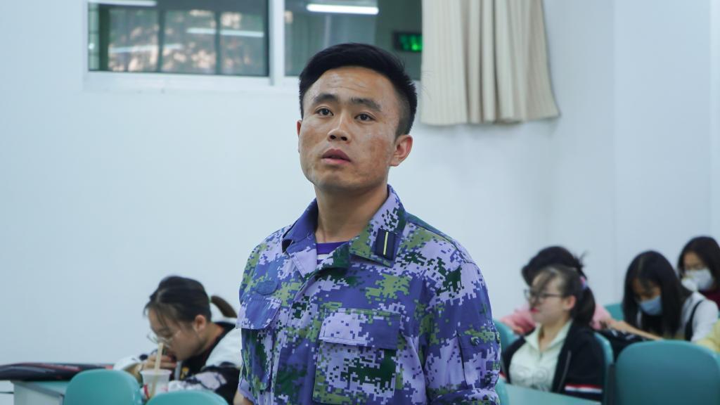 青春因磨砺而出彩,人生因奋斗而升华。张雅琳以一段视频向同学们讲述了自己的个人经历及感悟收获。她分享了初进新兵连时,军队的内务及严格的军规对她的挑战,战友的团结与鼓励让她坚定了初心与梦想,岗前集训感悟到的酸甜苦辣。关于应征入伍的流程和政策,张雅琳从应征入伍的年龄标准、身体条件、视力要求、兵役登记、应征报名及应征地选择等方面对老员工征兵入伍政策做了详细解读。提到优抚优待政策,她就尊崇优待、入伍发展、复学升学、经济补助、就业创业五个方面进行阐述,号召同学们携笔从戎,保卫国家。保卫国家终不悔,绿色军营献青春。黑学虎主要讲了征兵入伍的政治条件和有服兵役义务的公民的违法违规行为及其承担的法律责任追究。